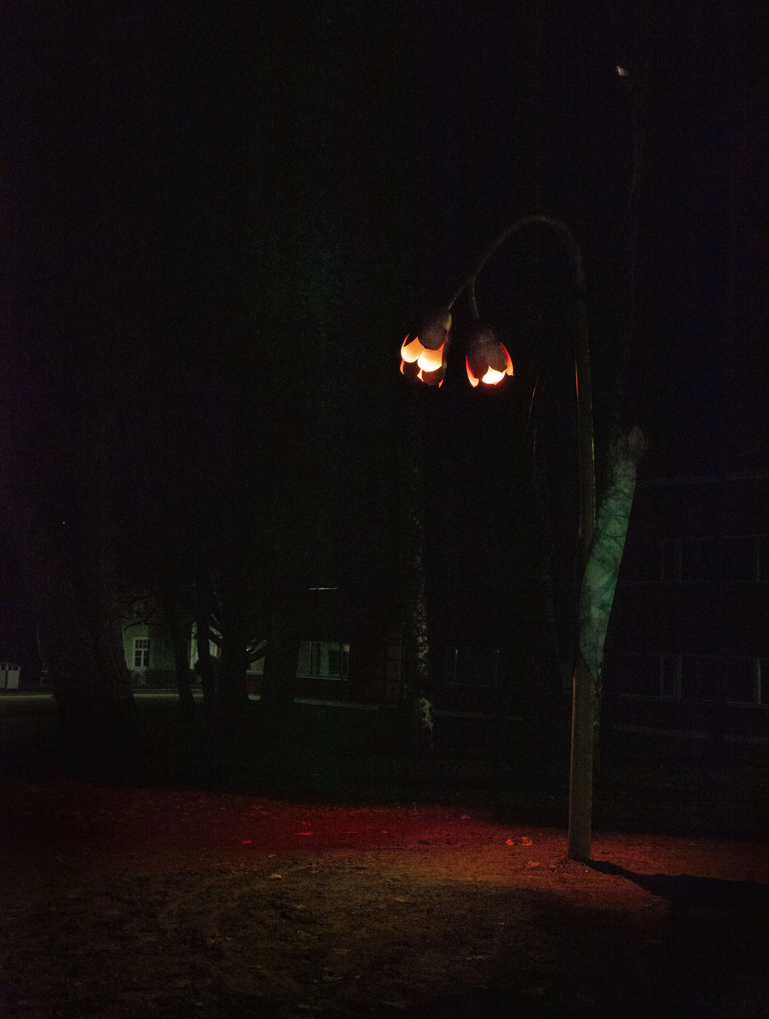 The sculpture illuminates itself and its surroundings. In the dark, colored lights placed inside the flowers illuminate the lower parts of the work and the ground at its base. Light has traditionally been associated with knowledge: light reveals and shows things, and things can be illuminated by telling about them.